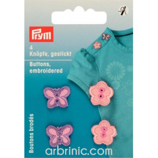 PRYM Embroidered Buttons - Pink Flower and butterfly (4 pieces)