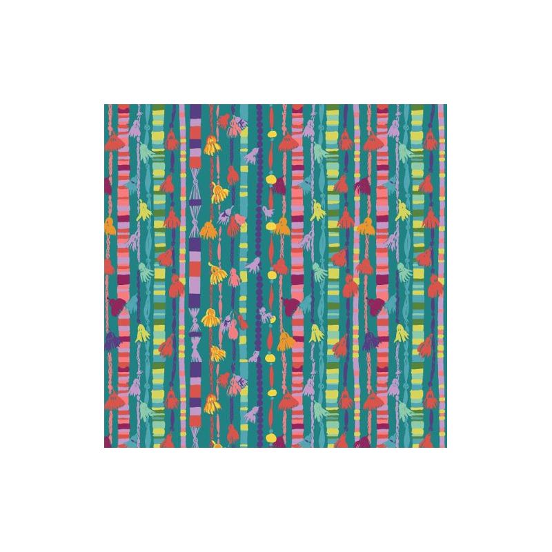 Organic cotton print fabric Festival Tassles In Teal by Monaluna Fabrics