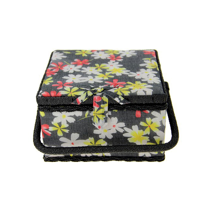 Boîte à couture en tissu Noire à fleurs